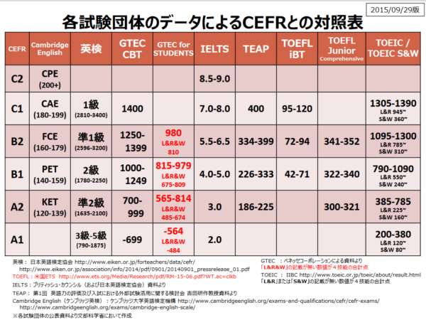 この後は、特に言及なくアルファベットと数値の組み合わせが出てきた場合、このCEFRの基準となります。