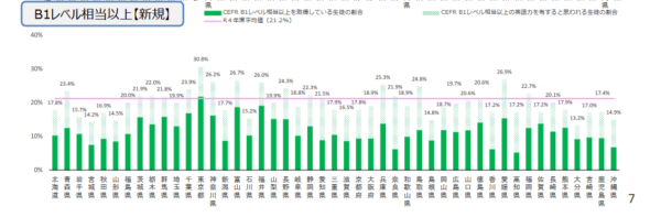 CEFR B1合計トップの東京も